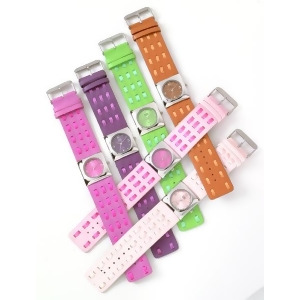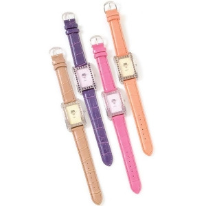 This sleek style is accented with colored crystals to match face and embossed croc band.Many designs available match your personal style.Satisfaction ensured.Color: Purple.