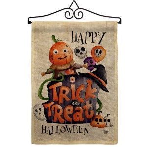 Halloween Beautiful Mini Garden Decorative Flags with Garden Banner Pole Stand - Complete Set with Wall Hanger - Power Coated Metal Flag Holder. Ornament Collection have variety of home decoration for all occasions. Uniquely design for hanging indoor or outdoor use. We are committed to offering you exceptional values. Our customers enjoy displaying our yard banner sign for longer periods. For more than a decade, weve been dedicated to manufacturing flags with no comparison in quality and beautiful designs. Our flags are made with our Pro Guard material that is soft to the touch and designs can be read correctly on the flag. A feature that our customers will love. We are committed to using eco-friendly inks that wont leave a foot print in our environment. FeaturesTrick Or Treat Day Garden Flag Set Falltime Halloween 13 x 18.5 in. Double-Sided Decorative Vertical Flags House Decoration Banner Yard GiftMade in USAIncludes:1 pc x Mini Garden Flag 13" x 18.5"1 pc x 3.75" x 14.5" Metal Yard Banner HardwareSpecificationsTheme: HalloweenPrint: Double-SidedReadable: Readable Both SidesMaterial: Weather Resistant - Double BurlapStitching: Double StitchedDisplay: VerticalHang Type: SleeveArtist: Aldora LarsonCountry of Origin: USASize: 13 x 18.5. in.Weight: 0.45 lbs