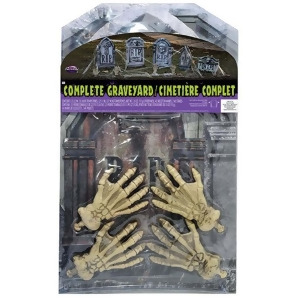 Ready to turn the lawn into a haunted graveyard this Halloween. Then do not forget to pick up our Complete Skeleton Graveyard Kit Decorations with Tombstones, Skeleton Hands, Spider Web. With this set, you will receive everything you need to make your home a real spooky cemetery scene. Featuring two 22" tombstones as well as two 11" tombstones, 4 skeleton hands, 14 stakes, and 10 grams of webbing, you will have all the trick or treaters walking to your door with caution when they find themselves in this undead graveyard this year. SpecificationsCostume Theme: HorgothicAge Group: AdultSize: One SizeWeight: 13.9 lbs