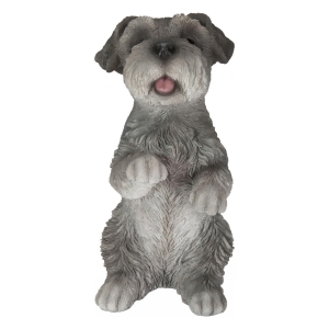 Embrace the charm of the cute miniature Schnauzer sitting statue, an ideal addition to your home and garden decor. This remarkable sculpture is a true work of art, exuding a whimsical aura in your space. With its endearing design and captivating presence, it adds a touch of charm and beauty to your surroundings. Enjoy the enchantment this delightful statue brings to your home, captivating dog lovers of all ages. Product Features: Gray schnauzer outdoor statue Miniature schnauzer in standing pose Intricate detailing and craftsmanship Perfect decoration for garden, patio, or inside your home Care instruction: wash gently with mild soap and water using a non-abrasive sponge Recommended for both indoor and outdoor use Dimensions: 7.75 H x 5.25 W x 4 D Material s : resin