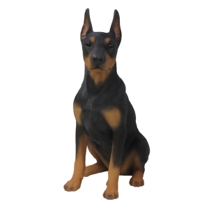 Meet your new garden guardian! This captivating Doberman Pinscher is ready to protect your space with its loyal gaze. Sitting upright, this lifelike statue boasts a striking colored coat. A perfect blend of strength and charm, it's a must-have for dog lovers and those seeking a unique garden accent. Let this majestic piece add a touch of elegance to your outdoor oasis. Product Features: Black and brown dog garden statue Showcases a sitting Doberman pinscher dog Designed with realistic Intricate detailing Recommended for both indoor and outdoor use Dimensions: 24 H x 18.5 W x 10.75 D Material s : polyresin