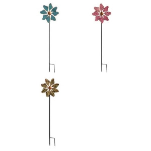 Proudly spinning its kinetic tail as the wind blows, this beautiful hummingbird wind spinner is in flight on its sturdy lawn stake to decorate your yard with color and motion. The garden stake yard art also includes a solar light at the top of the garden stake. The solar wind spinner makes quite a statement towering at 37 inches in height. The lawn ornament is designed in lovely, vibrant hues, lending unique style and motion to lawn, garden, patio or any outdoor space. Simply anchor this wind spinner yard art in the ground and watch its wind spinning tail twirl in circles. FeaturesCreek Iron Outdoor Garden StakePack of 12SpecificationsColor: Multi ColorMaterial: Creek IronBattery Size: AAASize: 33 in.Weight: 11.52 lbs