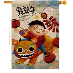 Angeleno Heritage have variety of House Flag for all occasions. Uniquely design for hanging indoor or outdoor use. We are committed to offering you exceptional values. Our customers enjoy displaying our House Flag for longer periods. For more than a decade, weve been dedicated to manufacturing flags with no comparison in quality and beautiful designs. Our flags are made with our Pro Guard material that is soft to the touch and designs can be read correctly on the flag. A feature that our customers will love. We are committed to using eco-friendly inks that wont leave a foot print in our environment. FeaturesNew Year Beautiful Large House FlagNew Year Joy House Flag Lunar Double-Sided Decorative Vertical Flags Decoration Banner Garden Yard GiftSpecificationsTheme: New YearSize: 28" x 40"Print: Double-SidedReadable: Readable Both SidesMaterial: Weather Resistant 3 Layers BlockoutStitching: Double StitchedDisplay: VerticalHang Type: SleeveArtist: Amerie RobbinsCountry of Origin: United States of AmericaWeight: 0.494 lbs