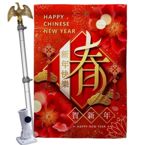Ornament Collection have variety of House Flag Set for all occasions. Uniquely design for hanging indoor or outdoor use. We are committed to offering you exceptional values. Our customers enjoy displaying our House Flag Set for longer periods. For more than a decade, weve been dedicated to manufacturing flags with no comparison in quality and beautiful designs. Our flags are made with our Pro Guard material that is soft to the touch and designs can be read correctly on the flag. A feature that our customers will love. We are committed to using eco-friendly inks that wont leave a foot print in our environment. FeaturesNew Year Beautiful Large House Flag, Wooden Flagpole And Bracket Wall Mount Complete Set Gold Eagle Aluminum 6' FlagPole with Metal HolderNew Year Spring House Flag Set Lunar Double-Sided Decorative Vertical Flags Decoration Banner Garden Yard GiftSpecificationsTheme: New YearSize: 28" x 40"Style: Decorative FlagPole With Adjustable Angle Flag BracketPrint: Double-SidedReadable: Readable Both SidesMaterial: Weather Resistant 3 Layers BlockoutStitching: Double StitchedDisplay: VerticalHang Type: SleeveArtist: Molly WillCountry of Origin: United States of America