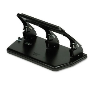 Heavy-Duty Punch offers a gel-padded handle for added comfort when drilling through paper. Features an oversized 9/32" hole diameter fixed center metal lock-down handle for storage and safety and a large-capacity no-mar chip pan.Padded Handle.Lock Down Handle.Paper Guide - Adjustable.Paper Chip - Pan.Non-skid Base.Number of Punch Heads: 3.Punch Positions: 3 Hole.Punch Shape: Round.Paper Punch Capacity: 30 Sheet of 20 lb Paper.Punch Size: 0.28".Color: Black.Material: Steel.Dimensions: 0.28"-10.5" x 6" x 3".