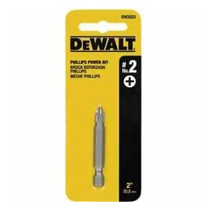 DeWalt #2 Phillips Power Bit, DW2022B, 2" Bit Length, 100/PK Features Shock-resistant steel for maximum durability Hardened core for extra strength and long life Heat-treated to resist breakage and wear FeaturesNo.2 Phillips Power Bit 2 in. - Pack of 100We provide high-quality modern products to be enjoyed by many clientsPack of 100SpecificationsSize: 2" Weight: 0.02 lbs