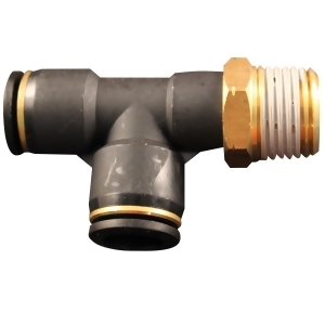 1/8 MNPT push to connect swivel run tee fittings offer easy installation of air lines. Simply push tubing into fitting, no gluing or special tools required. This 1/4 OD connector is reusable by simply pushing sleeve in and releasing the tubing. Push to connect fittings allow for maximum air flow and faster connection than standard compression fittings. Great for the garage or shop, these swivel tee fittings pivot 360 degrees Fahrenheit or easy installation and use. Milton products cover a broad range of application in various industries, such as automotive, fleet maintenance and construction. We have achieved the industry leader in high quality pneumatic accessories and fitting, proudly living up to our heritage of superior products and reliability. Features0.125 in. MNPT 0.25 in. OD Push to Connect Swivel Run Tee - 0.79 Lbs3/8 male national pipe thread1/4 outside diameterMaximum working pressure of 150 pounds per square inchBuna-N sealKey Feature:Easy push in/ one touch mechanismSpecificationsPush To Connect Fitting: Nylon Push to Connect FittingNPT Thread Size: 3/8 Male NPTHose OD Size: 1/4 OD TubingType of Fitting: Male Swivel Run TeeTool Requirements: No gluing or special toolsDimension: 0.75 H x 1 W x 2 LWeight: 0.79 Lbs