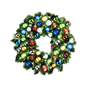 Vickerman 24 White/Red/Green Ball Wreath. It features 93 ornaments in a mixture of 1.5 , 2.4 , 2.8 , and 3.1 sizes. It features a combination of red, white and green ornaments in matte, shiny, and candy finishes. SpecificationsColor: White/Red/GreenSize: 24 in.