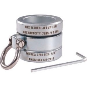 The Squids 3791 Locking Collar with Tool Attachment Point installs onto connecting, sleever and wrecking bars to create a retrofit attachment point for tethering tools up to 7lbs // 3.2kg, preventing dropped or falling objects from occurring on the job. Connection points for tool lanyards can be tricky to find, especially on connecting, sleever and wrecking bars with no captive holes. While working at-heights, it is important to tether tools as part of your overall fall protection plan, but the lack of these connection points can make that difficult. Ergodyne offers a wide range of innovative and high-quality products designed for safety, organization, and convenience in demanding environments. Their durable tool cases provide secure storage and easy portability for essential tools, ensuring professionals stay organized on the job. The high-visibility Hi-Vis jackets are crafted for maximum safety, featuring reflective materials to enhance visibility in low-light conditions, making them ideal for construction and roadside work. FeaturesRetrofit Tool Attachment Point - Designed to be installed on connecting, sleever or wrecking bars to create a tool attachment point for tetheringEasy Installation - Slide locking collar onto connecting, sleever or wrecking bar and tighten dual set screws with included hex key to secure into placeSpecificationsColor: SilverDescription: 3791 Connecting Bar Lock Collar with Tool Attachment PointLength: 1-3/16Material: SteelSeries: 3791Size: 7/8Width: 7/8 inWeight Capacity: 7 lbs