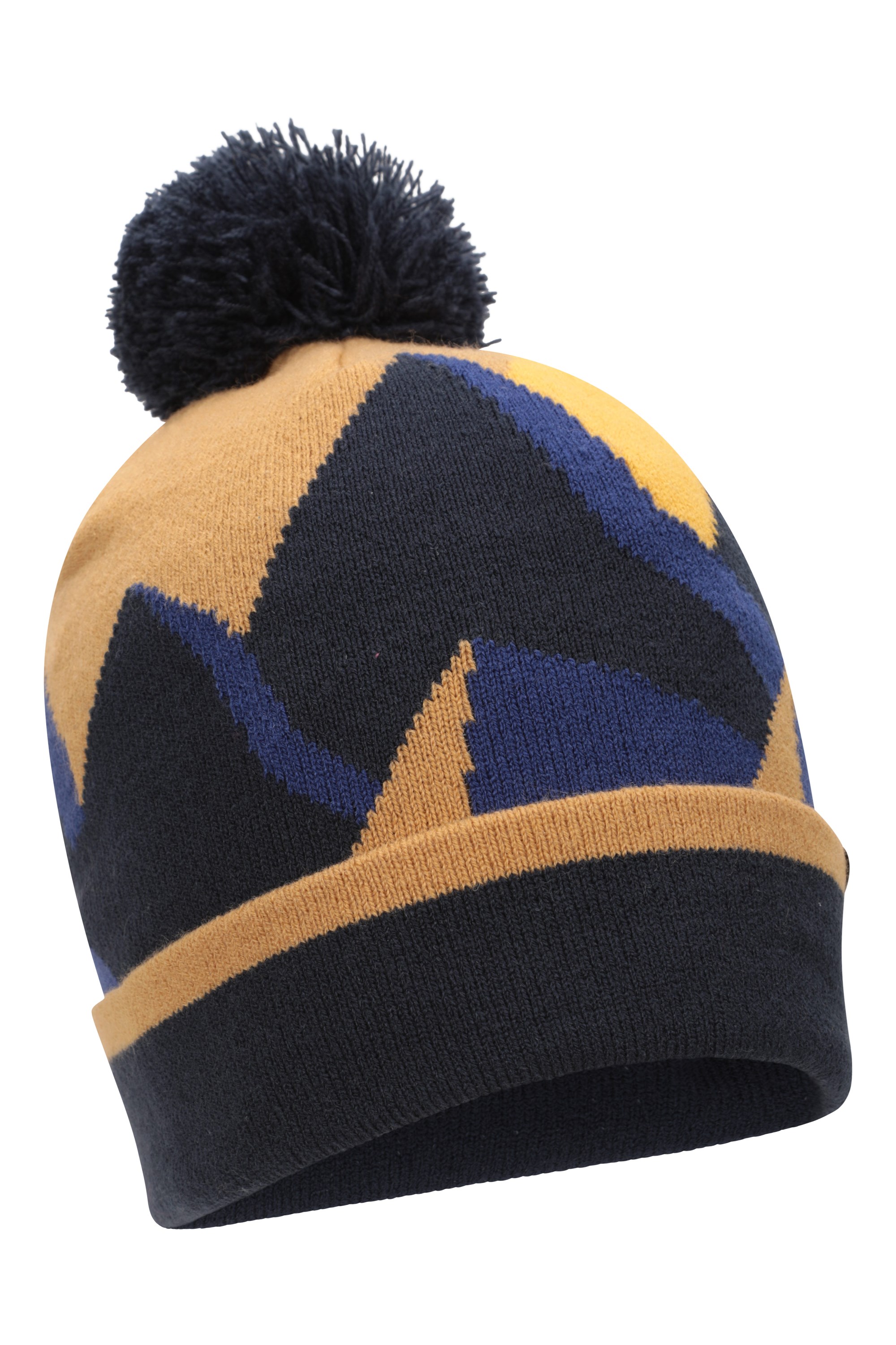 Men's Navy Mountain Pattern Beanie with Classic Po...