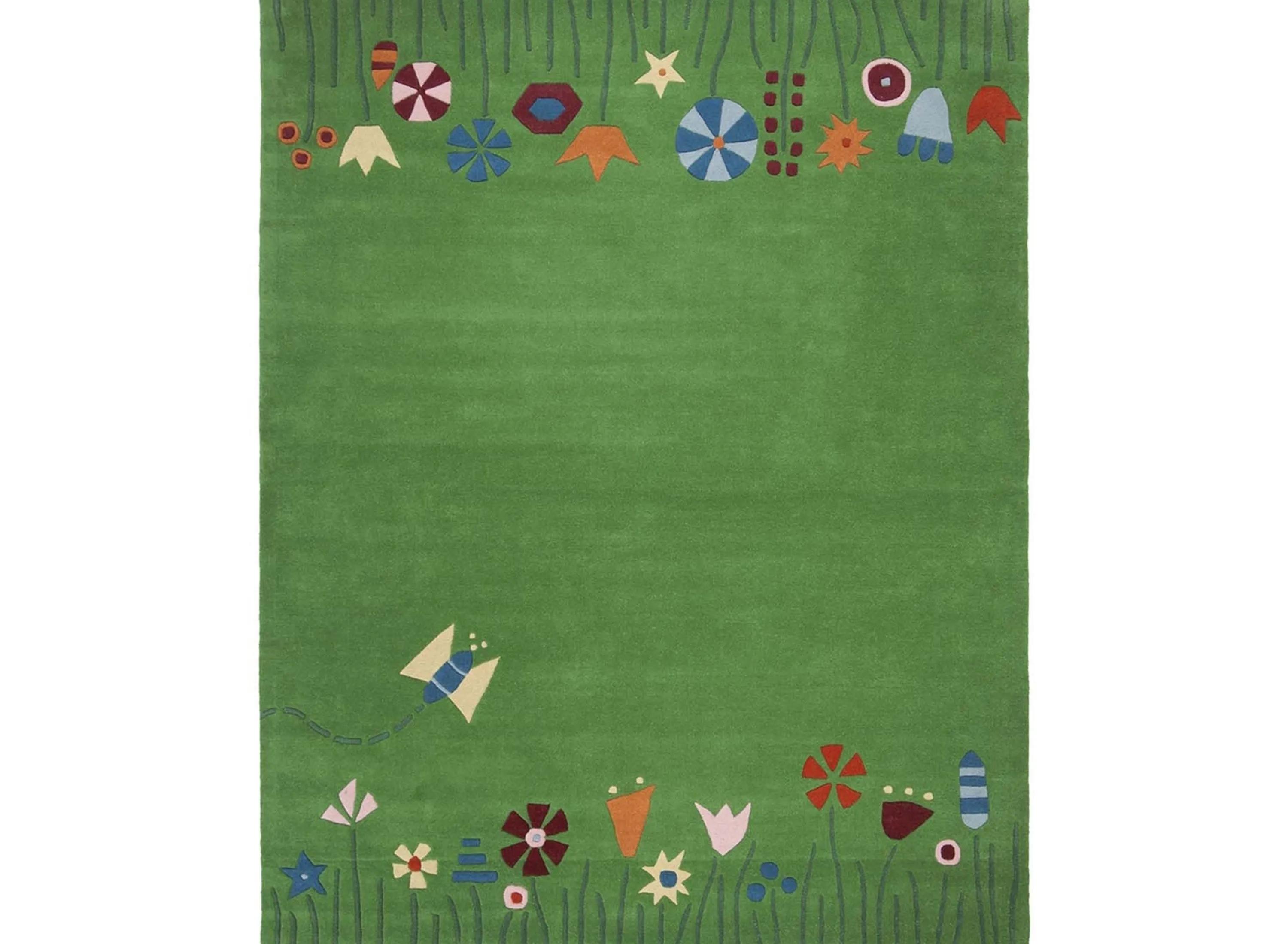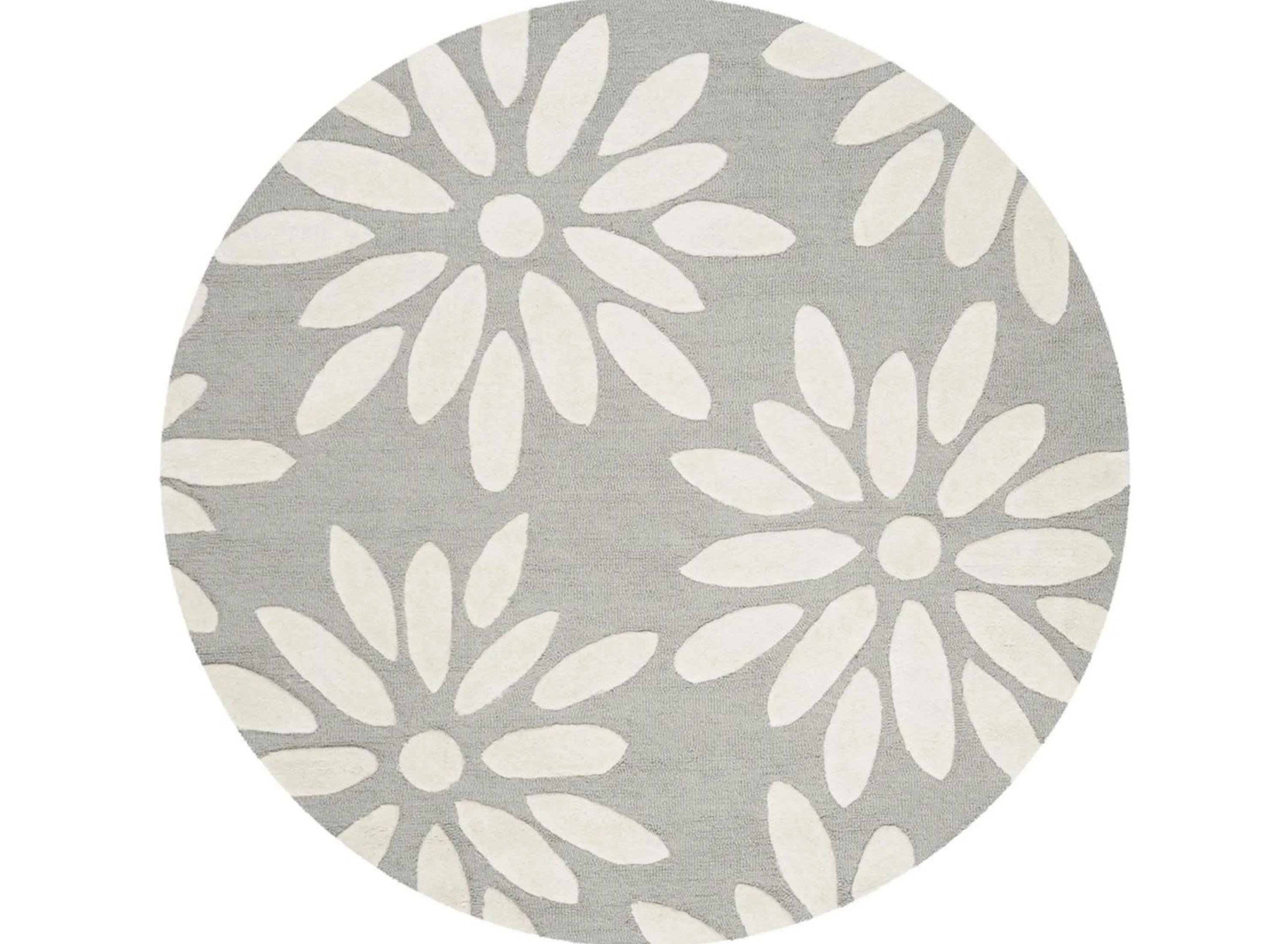The Hanau Kid's Rug features a colorful design with geometric flowers for a fun addition to your kid's room. These rugs are made with pure soft wool and hand-tufted to a cotton backing for added cushion.