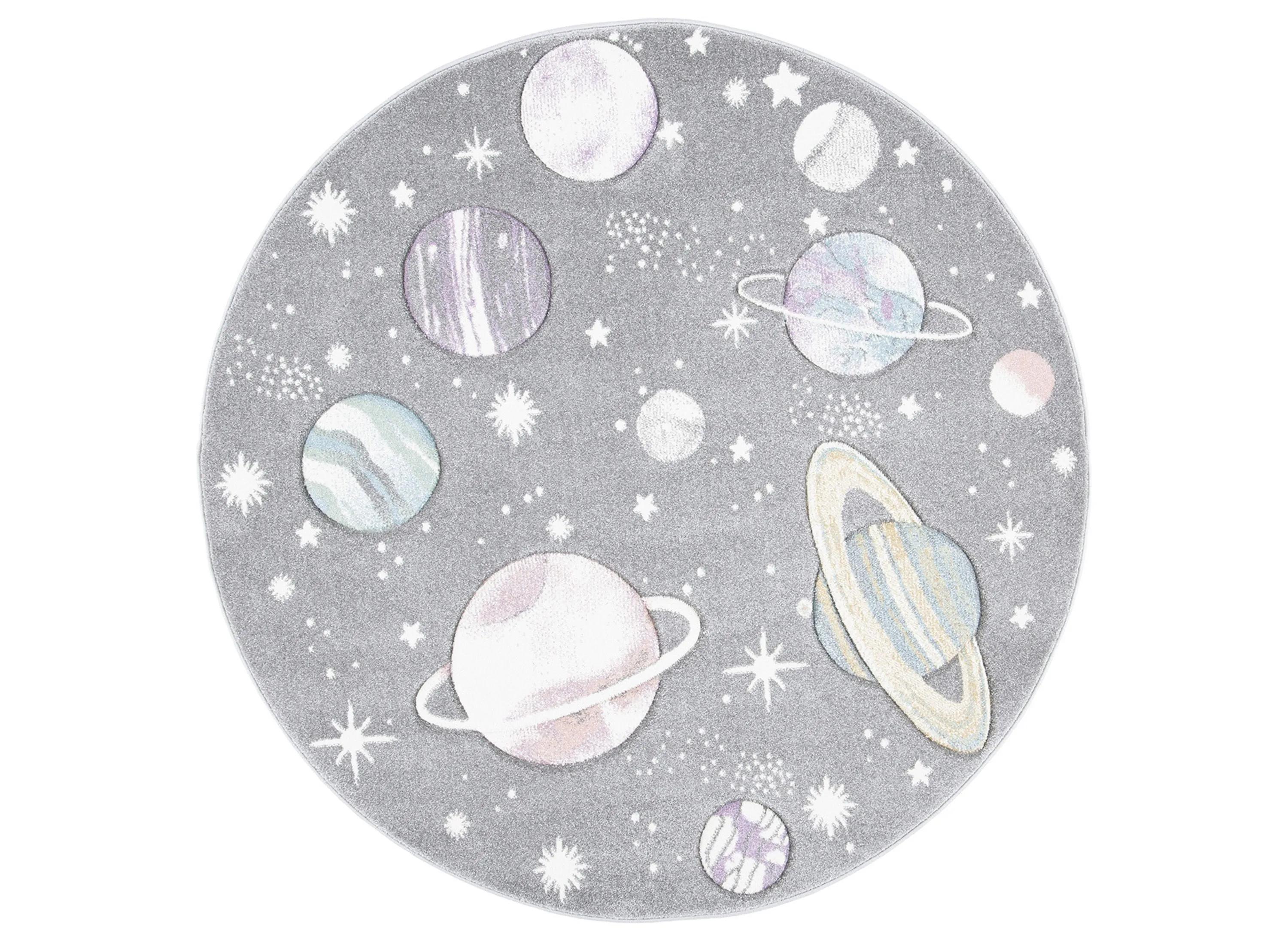 The Carousel Planets Kids Area Rug Round turns fanciful storybook animals and beloved motifs into colorful decor for kids. With pleasing hues and playful etched designs, these delightful kid's rugs sparkle in children's favorite rooms. Carousel Kids rugs are power-loomed using soft yet durable synthetic yarns for lasting beauty even when subjected to years of busy little feet.