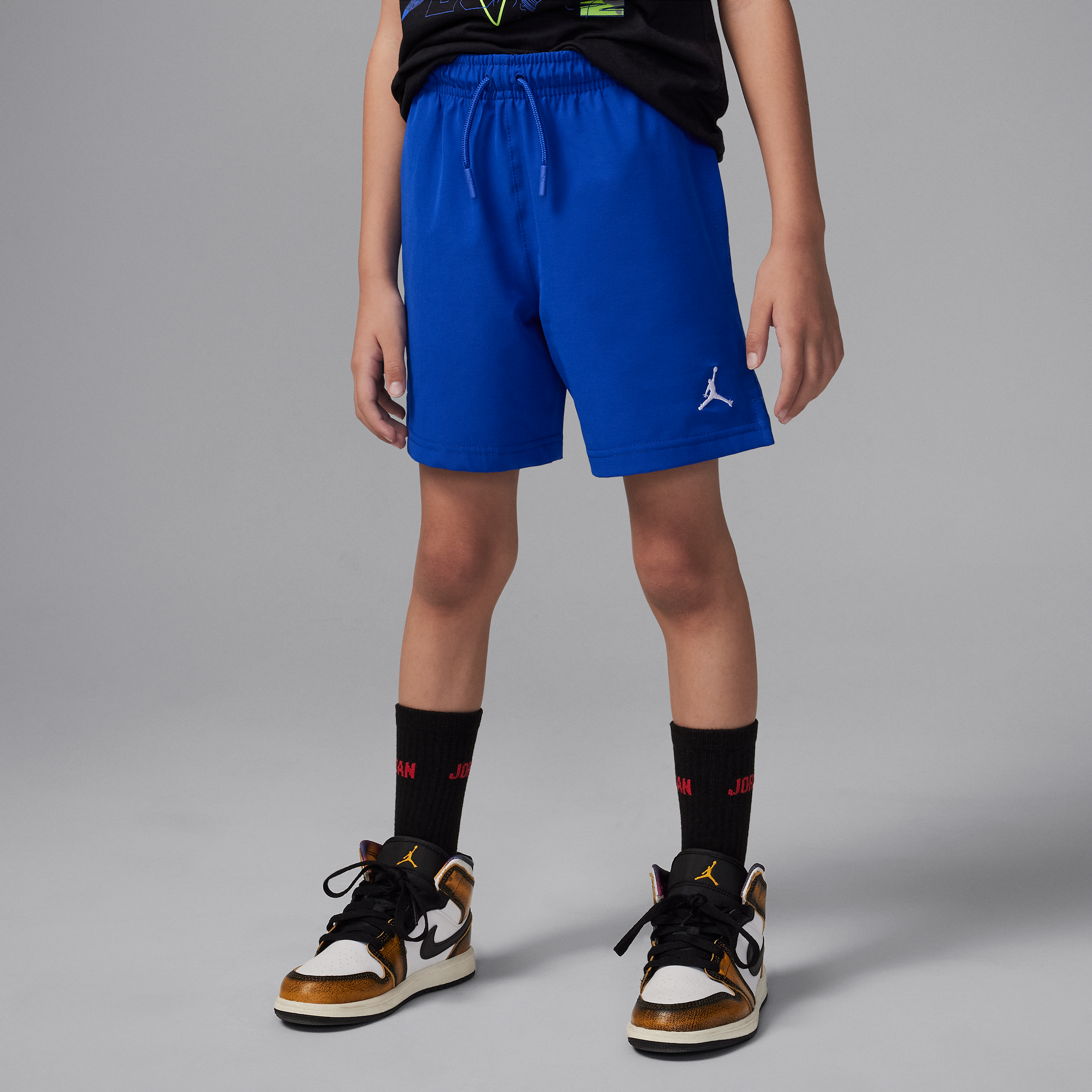 Designed for kids who are always on the move, these Jordan Play Shorts blend comfort and durability for any adventure. The stretchy poly poplin fabric ensures complete freedom of motion whether they're shooting hoops or racing across the playground. An adjustable drawcord waist offers a custom fit that grows with your child, while two secure pockets keep small treasures safe. The versatile blue color easily matches any Jordan top for a coordinated athletic look. Machine washable and made from a durable polyester and elastane blend, these shorts maintain their softness and shape through countless washes. Perfect for playground visits, sports practice, or casual weekends, they're built to withstand busy schedules and active lifestyles. Give your child the trusted Jordan quality and style that keeps up with their endless energy.
