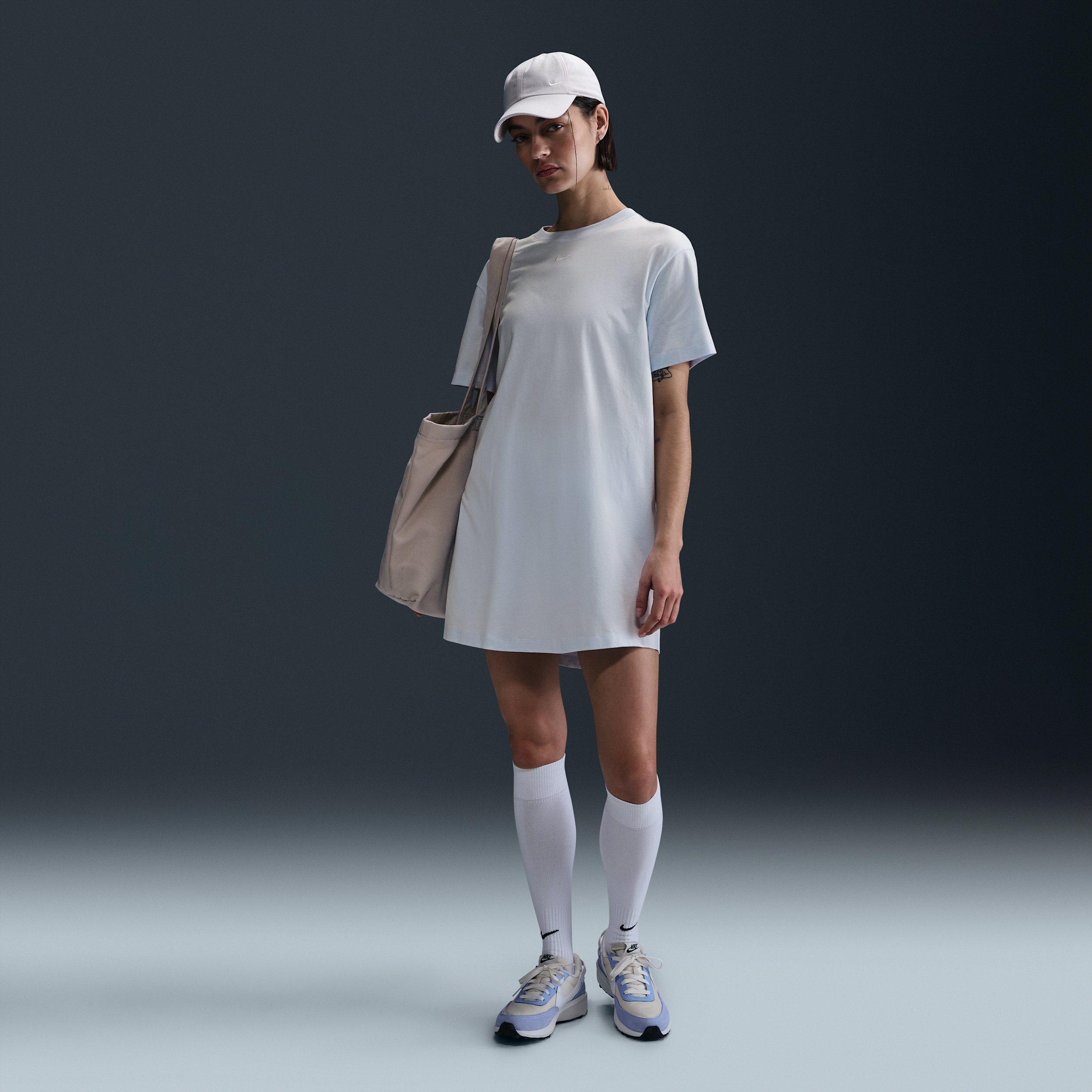 As comfy and easy to throw on as your favorite tee, this dress is ready for whatever you are. A curved hem and a flowy, oversized fit add a chic twist to a closet staple. Benefits:Dropped shoulders and oversized fit provide comfortable, confident feel. Nothing says classic T-shirt like 100% soft cotton. [] Product Details:100% cotton. Ribbed neckline. Embroidered Swoosh logo. Machine wash. Imported. Style: DV7882; Color: Blue Tint/Sail; Size: XS; Gender: Female; Age Group: Adult | Nike Sportswear Chill Knit Women's Oversized T-Shirt Dress in Blue, Size: XS | DV7882-423