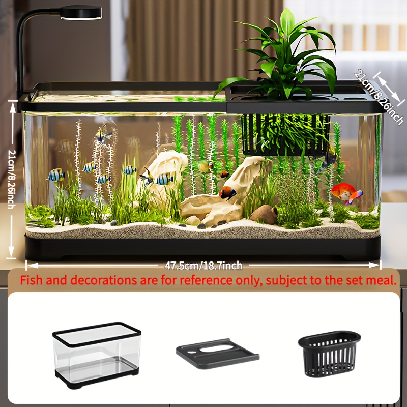This is no ordinary aquarium. This is a high clarity glass tank that allows you to build the desktop system of your dreams. With a capacity of just over three gallons, you can create an underwater marvel with small creatures or build a fishless planted tank that will add beauty to any desk or countertop. Constructed of high clarity glass that is similar to the kind of glass used on a car windshields, this elegant fish tank caters to beginner and advanced hobbyists who wish to maximize their fish keeping experience. Other advanced features include polished beveled edges and high-grade silicone that gives the aquarium a seamless appearance. SpecificationsColor: ClearSize: 7 x 24 x 9 in.Capacity: 6.5 gal