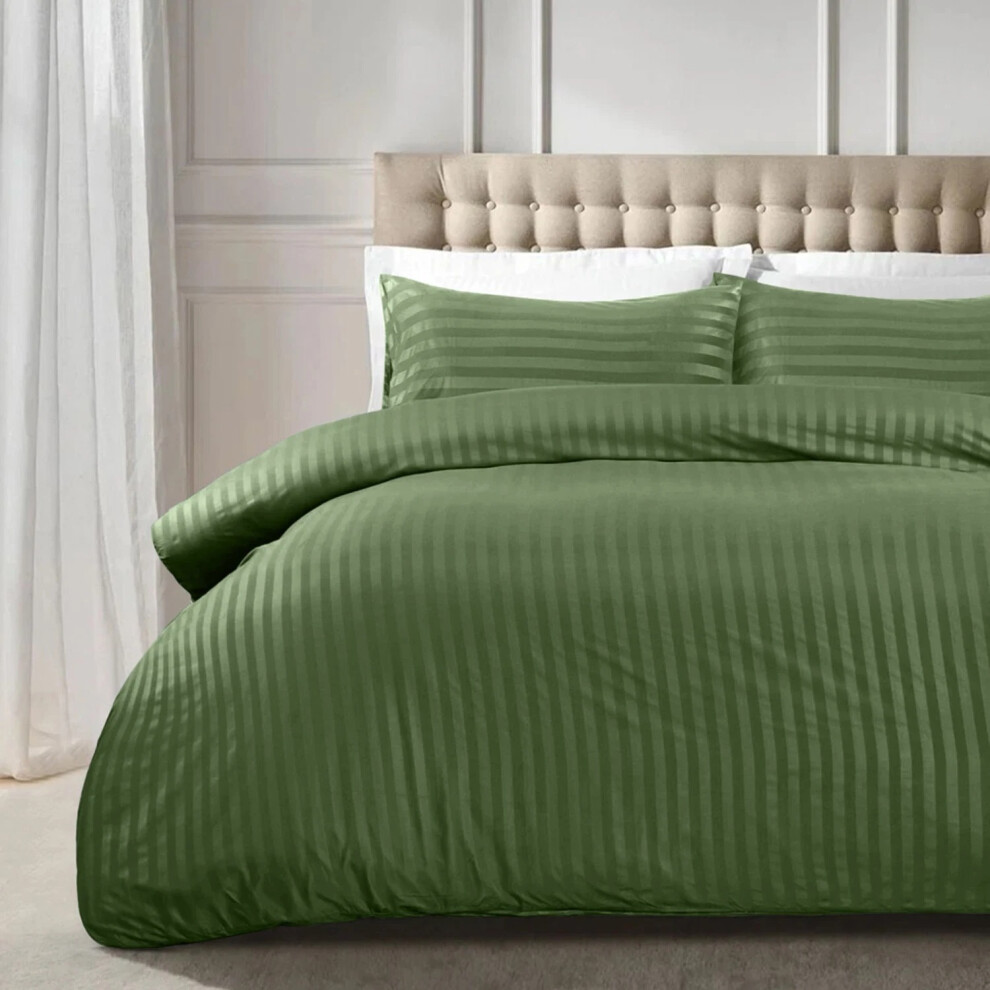 (King Stripe Duvet Cover 3 Piece) Luxury Green Bed...