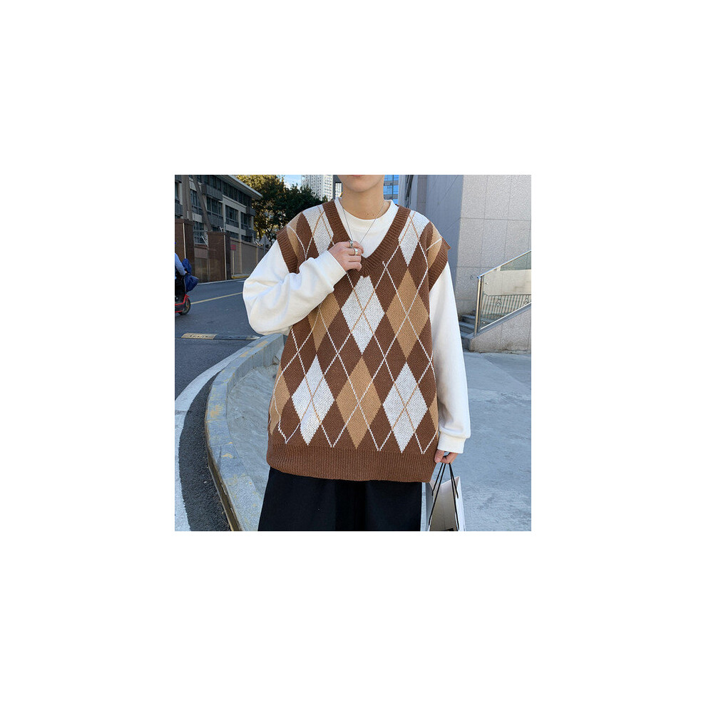 Sweater Vest Men Retro Japanese Preppy Stylish Str...