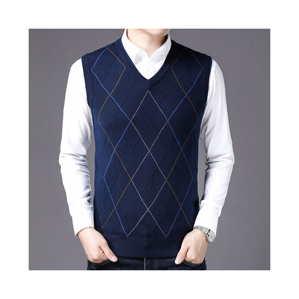 Casual V-Neck Sleeveless Waistcoat Men Clothes Aut...