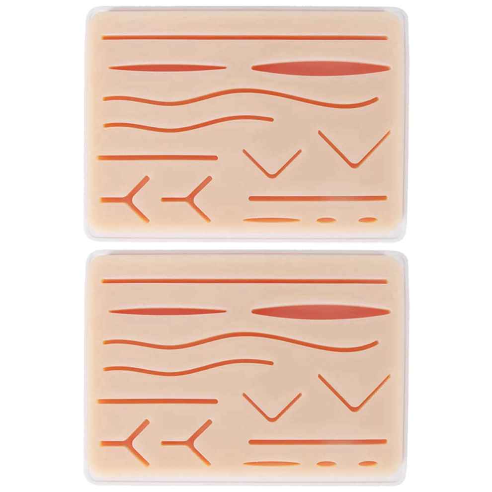 Each pad measures 17 x 12 x 1cm and weighs 240g, offering a substantial surface area for repeated practice. The high-quality silica gel material ensures durability and a realistic texture that closely resembles human tissue. Multiple wound types are integrated into the design, allowing you to practice various suturing methods on a single training tool.