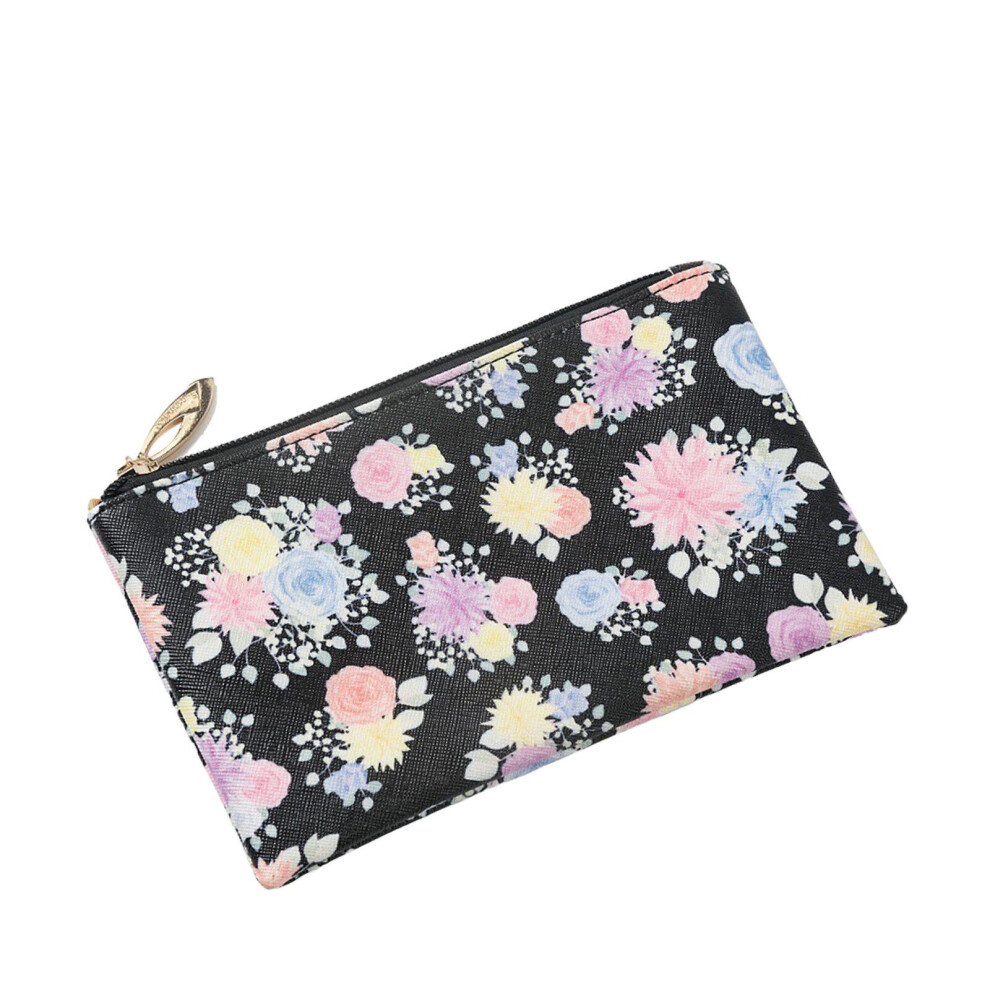 Solid Leopard Flower Print Short Buckle Wallet Pur...
