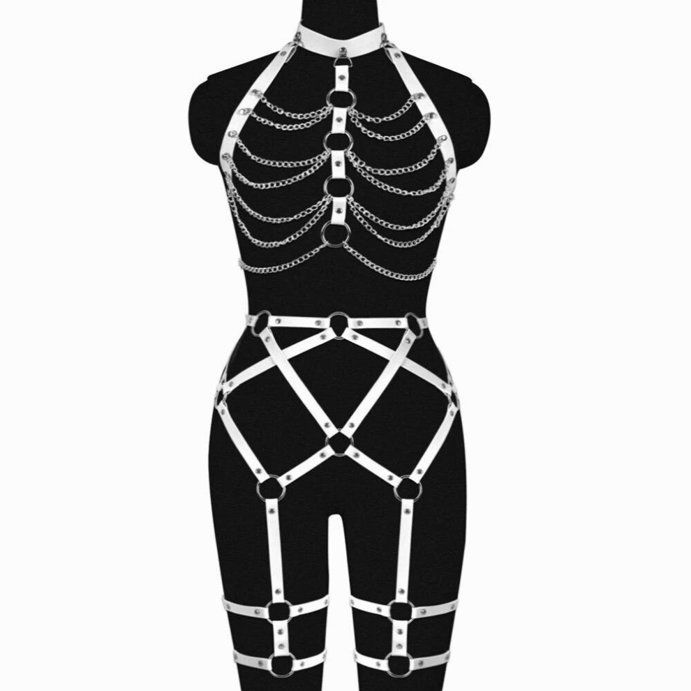 Metal Chain Accessories Punk Leather Harness For W...
