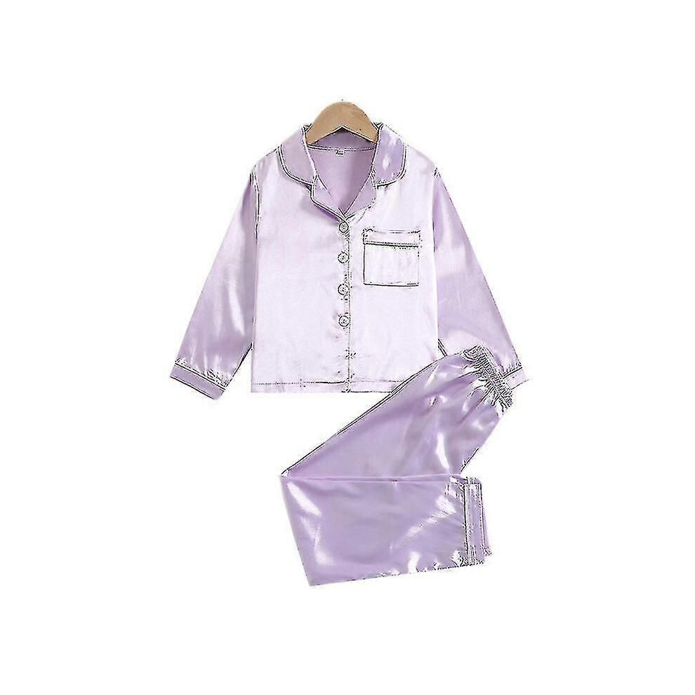 Polyester Button closure Both hand washing and machine washing Kids pajama sets is made of satin with some stretch touch, silky-smooth, very softly...