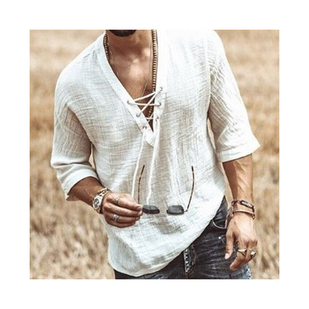 Plus Size Men's Tee Shirt Solid Tops Pullover V Ne...