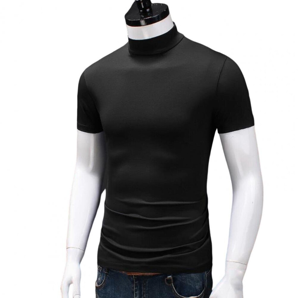 Spring Summer Men Solid Half Collar Short Sleeve S...