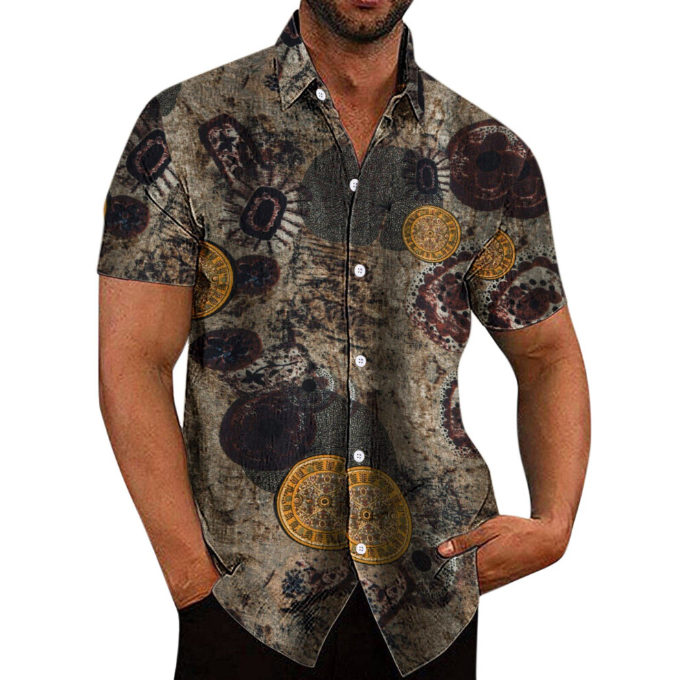 Summer Mens Shirts Ethnic Printing Beach Short Sle...
