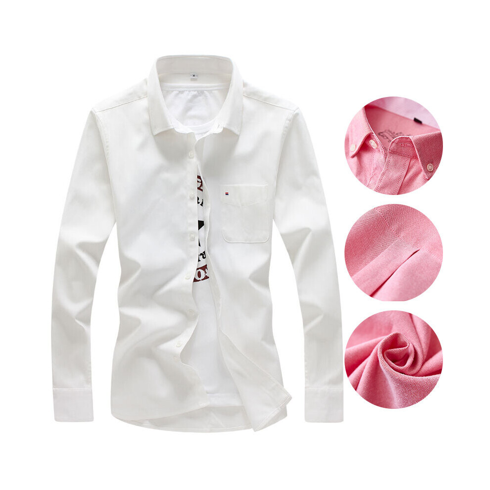 Spring and Autumn Solid Long Sleeve Men's Shirt St...
