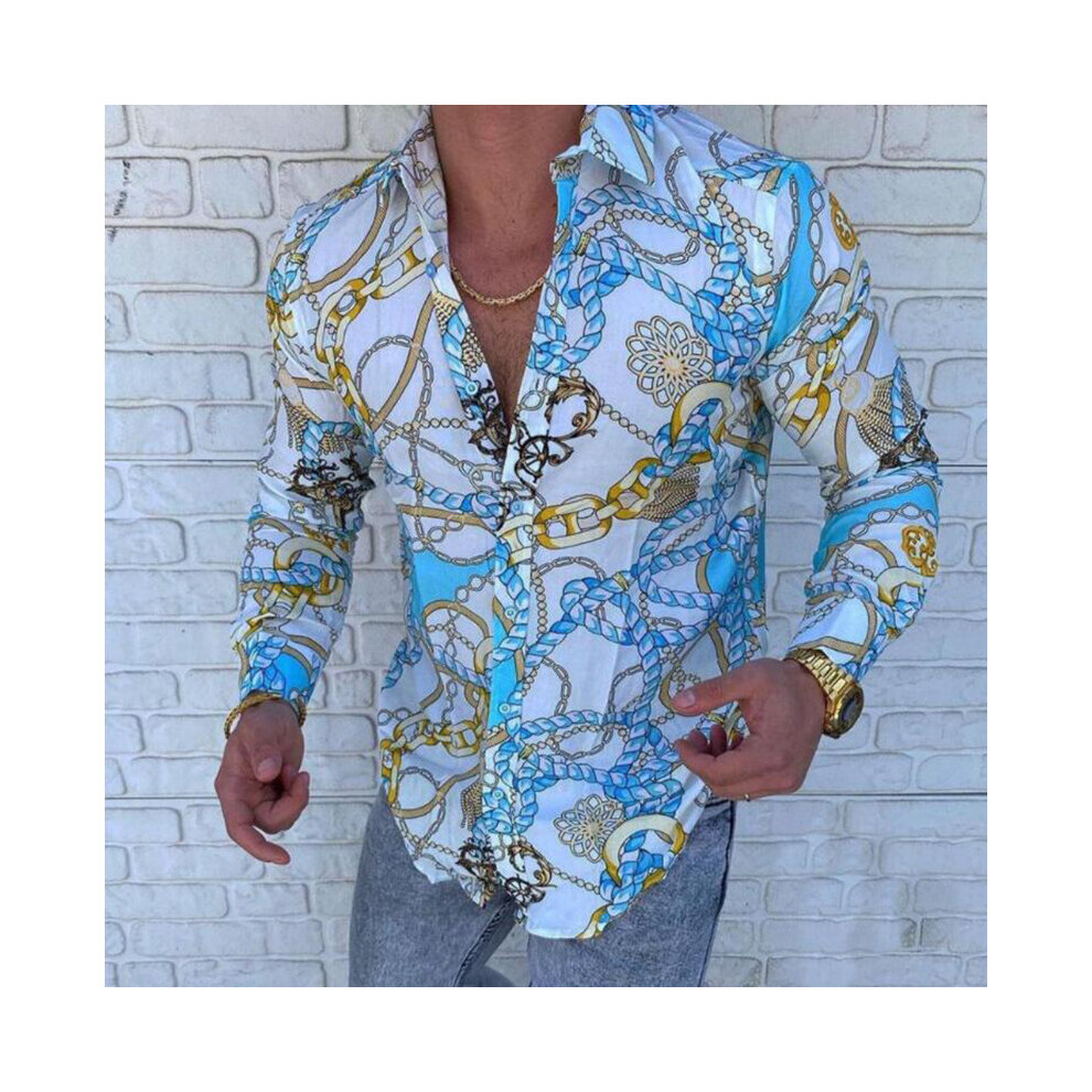 Men Shirts Turn-down Collar Buttoned Shirt Casual ...