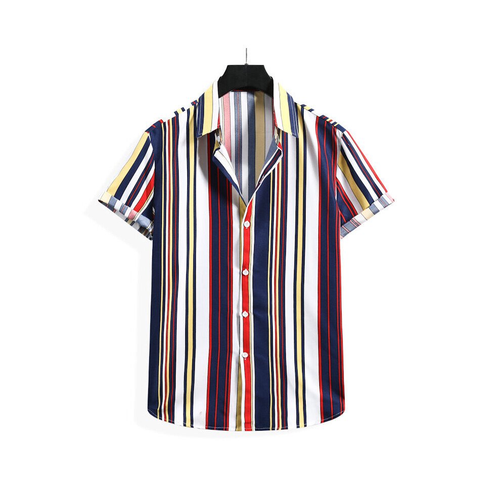 Short Sleeve Button Up Men Shirts Vintage Striped ...