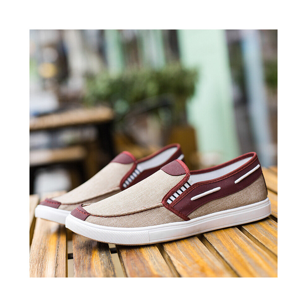 (Beige-42) Men Loafers Flats Canvas Shoes Men's Sl...