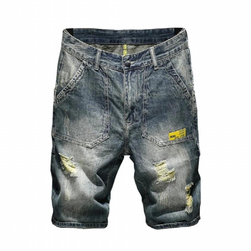 Mens Shorts Jeans Denim Shorts Retro Cotton Ripped...