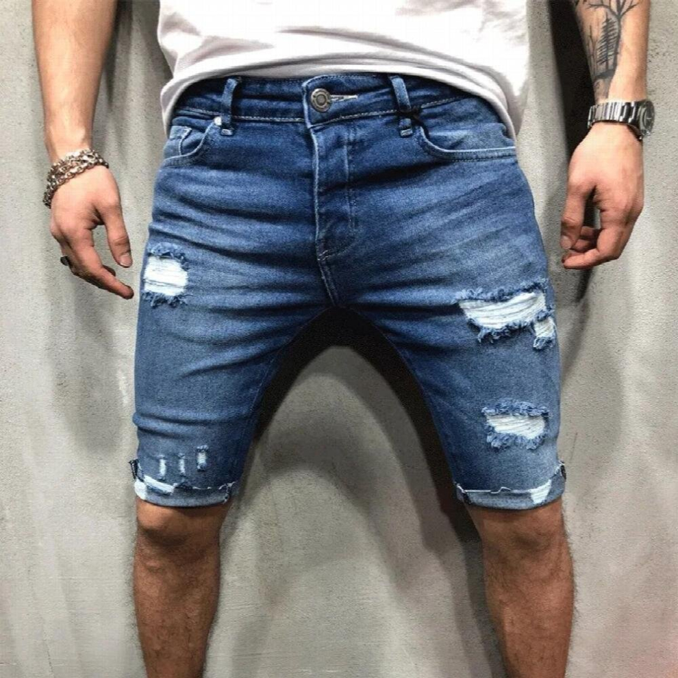 Men Casual Shorts Jeans Short Pants Destroyed Skin...