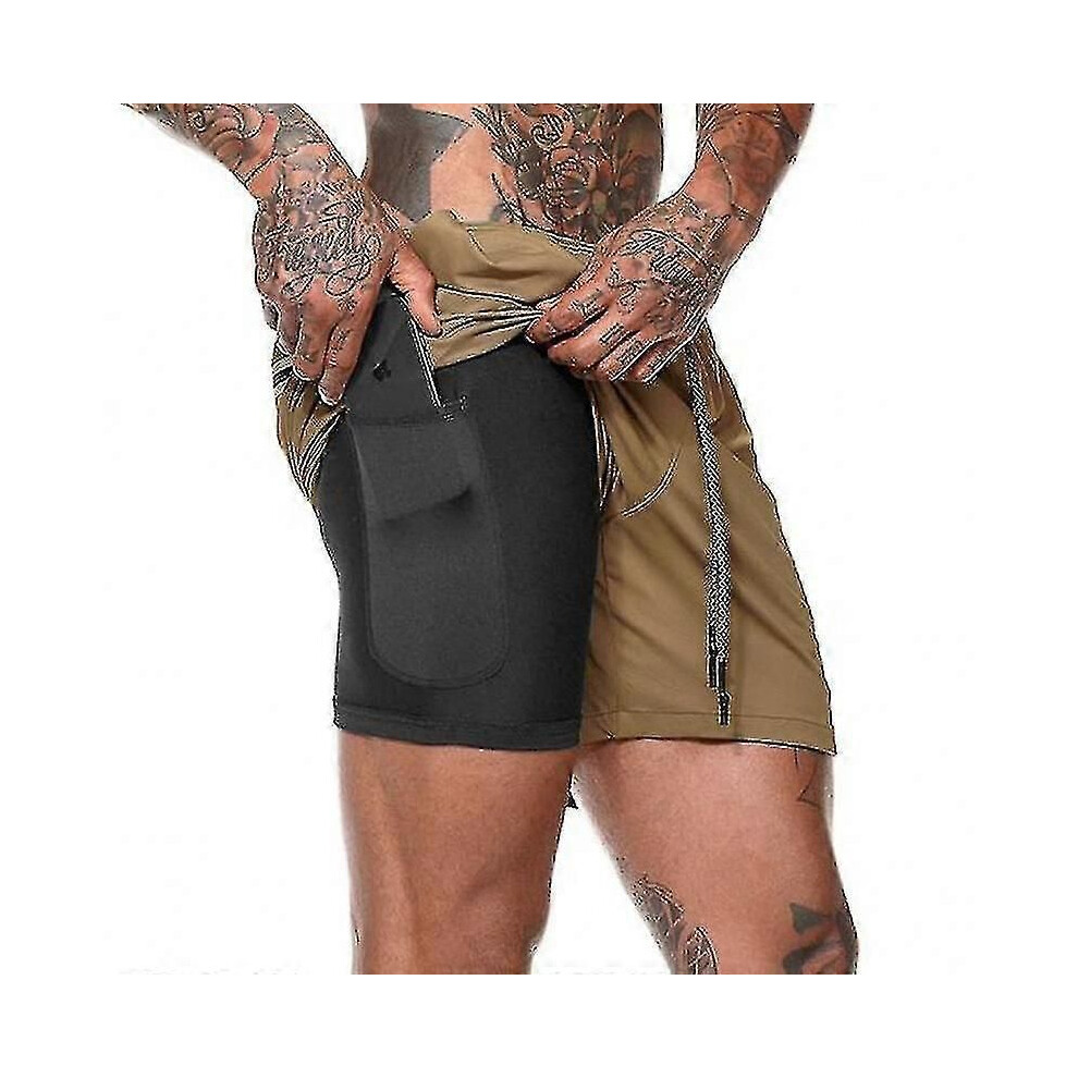 (XL, Brown) Mens 2 In 1 Running Shorts Sweatpants ...