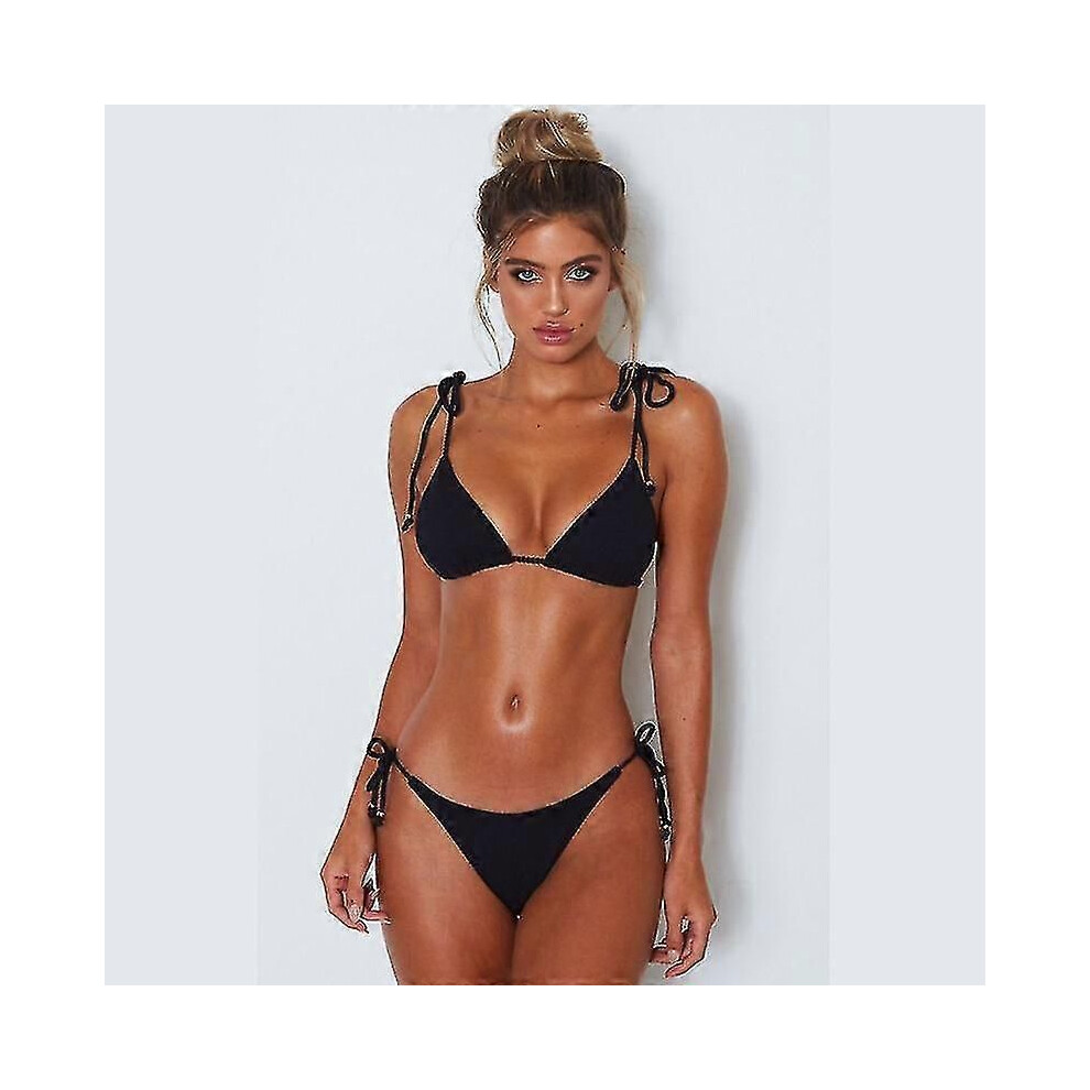 (XL, Black) Women Padded Bikini Set Strappy Bathin...
