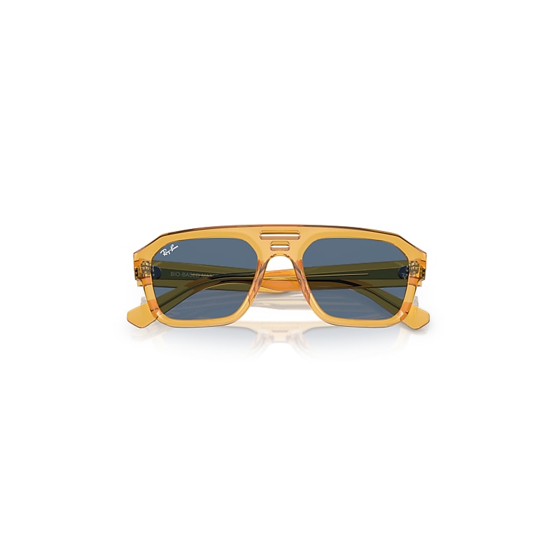 Embrace sustainable style with the Ray-Ban Corrigan bio-based sunglasses, featuring an innovative frame made from 67% bio-based materials. The transparent yellow temples create a fresh, modern look that complements any summer wardrobe while demonstrating your commitment to environmentally conscious fashion. These lightweight sunglasses offer exceptional comfort for all-day wear, with dark blue lenses that provide optimal sun protection and visual clarity. The bio-acetate construction represents Ray-Ban's dedication to reducing environmental impact without compromising on quality or style. Perfect for beach days, outdoor brunches, or casual city adventures, these sunglasses combine responsible manufacturing with the iconic design excellence that has made Ray-Ban a global leader in eyewear for generations.