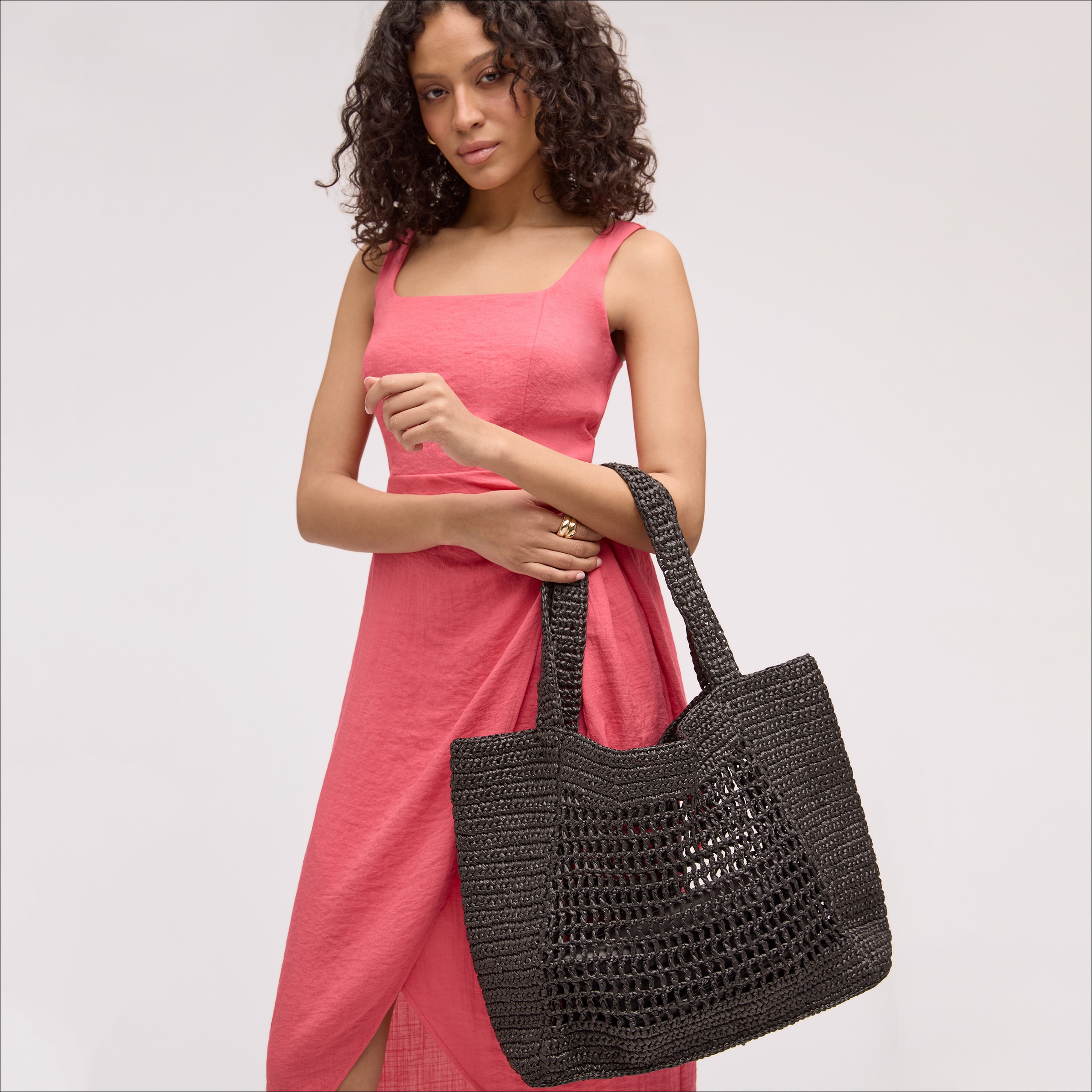 \ Infuse your wardrobe with effortless elegance through the Sam Edelman Marcie Open Weave Raffia Tote. Crafted from luxe woven raffia, this spacious tote features a convenient interior zipper pouch for secure storage and an eye-catching SE charm hangoff for a touch of signature style. Perfect for daily use or a beachside getaway, this tote combines practicality with chic design, elevating your look wherever you go.. Dimensions: H 21.26 inches x W 6.30 inches x D 13.39 inches. Material: Raffia. Lining: Unlined. Drop: 10 inches. \