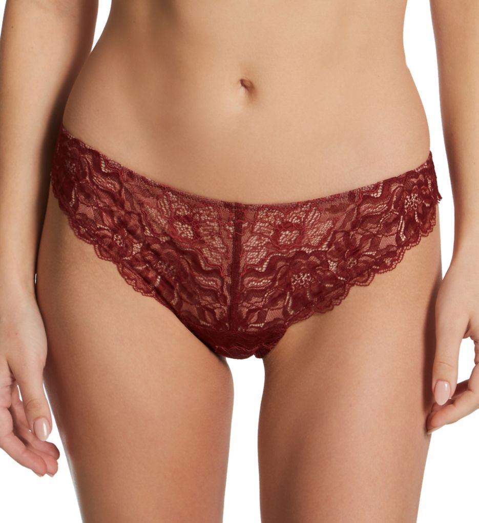 Hanro 70957 Solene Lace Thong Panty Secret Berry L at HerRoom. | Hanro Women's Solene Lace Thong Panty in Secret Berry | Size: Large | HerRoom.com