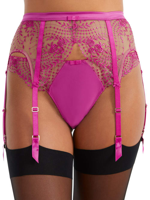 Discover the epitome of vintage-inspired elegance with the Julie's Roses Garter Belt, exclusively designed by Dita Von Teese for Bare Necessities. This stunning piece captures the timeless allure of old Hollywood glamour while celebrating modern femininity. Inspired by actress Julie Newmar’s enchanting rose garden, the delicate embroidery creates an illusion of roses floating gracefully against your skin. Crafted from luxurious stretch mesh and finished with satin trim, this garter belt offers both comfort and sophistication. The six non-removable straps are fully adjustable, ensuring a flawless, custom fit for every body shape and size. A secure three-column, two-row hook and eye back closure provides easy wear and reliable support. Whether you’re dressing up for a special occasion or adding a touch of luxury to your everyday lingerie collection, the Julie’s Roses Garter Belt enhances confidence and empowers you to feel beautiful. Pair it with your favorite thong and thigh highs, available separately at Bare Necessities, to complete a look that’s as unforgettable as you are. Visit Bare Necessities today to explore this and other exquisite pieces from Dita Von Teese’s collection. Embrace your inner glamour and make every moment extraordinary with lingerie designed to inspire confidence and celebrate your unique beauty.