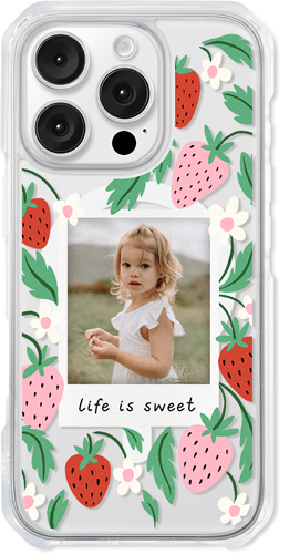 Custom iPhone 16 Pro Cases: Strawberry Blooms, Cle...