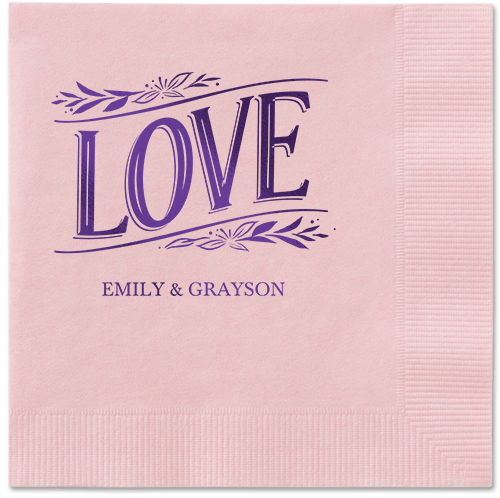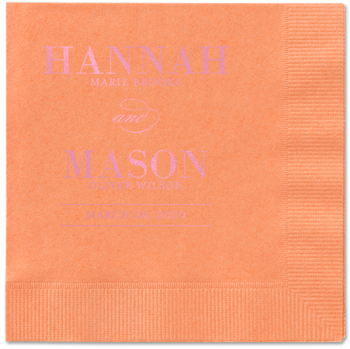 Made of recycled paper. Comes in sets of 50. Napkin measures: 4.75H, 4.75W. Design and text offered in the following foil-stamp colors: Gold Metallic, Silver Metallic, Royal Metallic, Purple Metallic, Sage Metallic, White Matte, Black Matte, Midnight Matte, Blush Matte, Mocha Matte