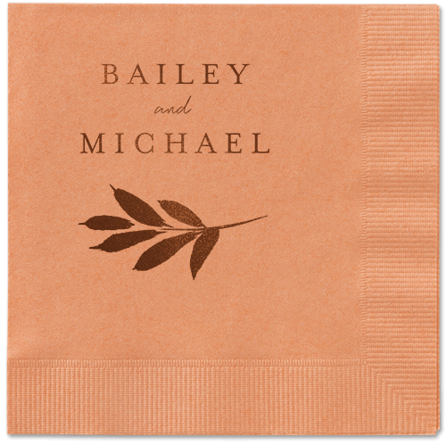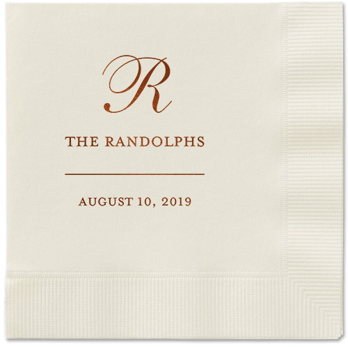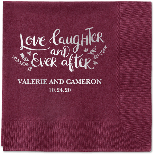 Made of recycled paper. Comes in sets of 50. Napkin measures: 4.75H, 4.75W. Design and text offered in the following foil-stamp colors: Gold Metallic, Silver Metallic, Royal Metallic, Purple Metallic, Sage Metallic, White Matte, Black Matte, Midnight Matte, Blush Matte, Mocha Matte
