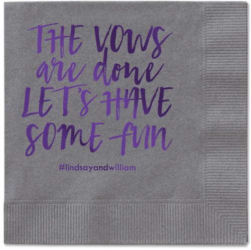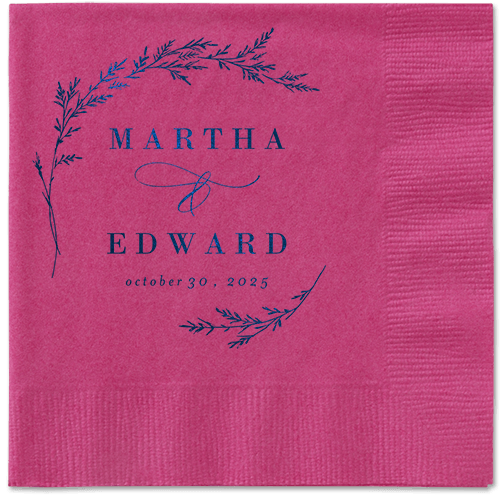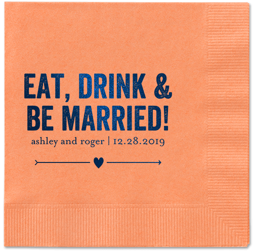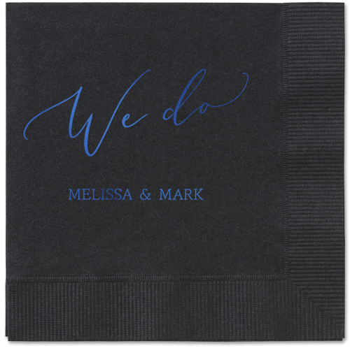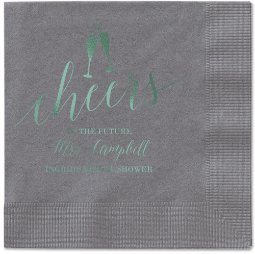 Made of recycled paper. Comes in sets of 50. Napkin measures: 4.75H, 4.75W. Design and text offered in the following foil-stamp colors: Gold Metallic, Silver Metallic, Royal Metallic, Purple Metallic, Sage Metallic, White Matte, Black Matte, Midnight Matte, Blush Matte, Mocha Matte