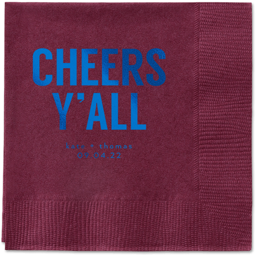 Made of recycled paper. Comes in sets of 50. Napkin measures: 4.75H, 4.75W. Design and text offered in the following foil-stamp colors: Gold Metallic, Silver Metallic, Royal Metallic, Purple Metallic, Sage Metallic, White Matte, Black Matte, Midnight Matte, Blush Matte, Mocha Matte