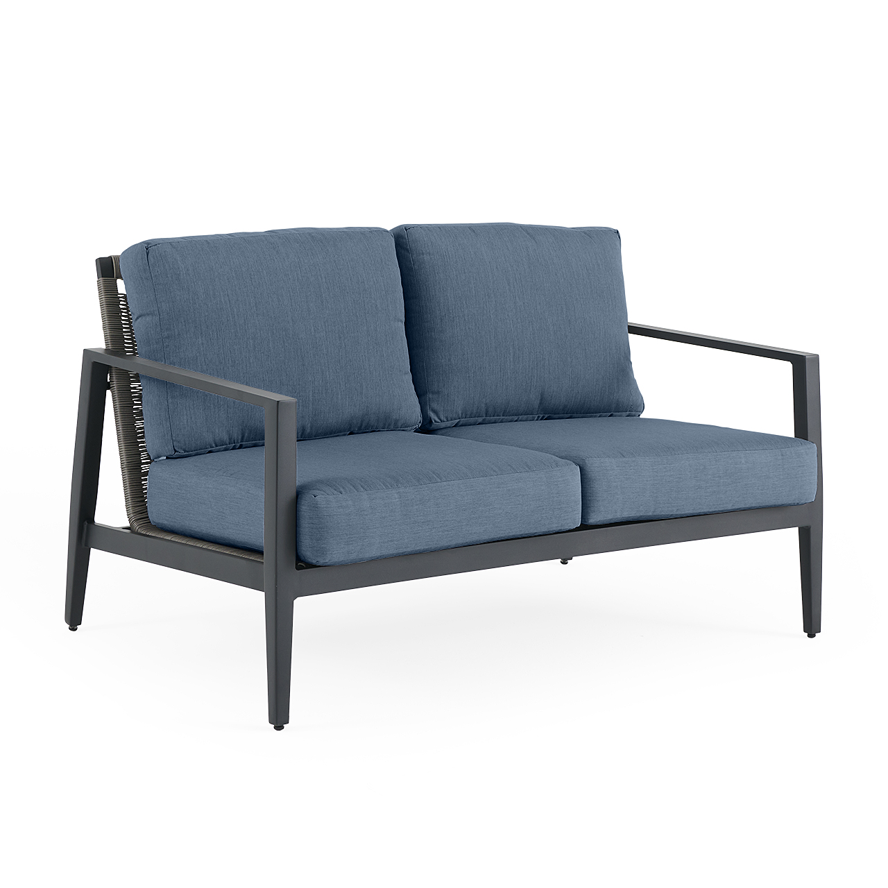 The Portofino Collection features a bold and modern look that is built for long-lasting durability and will provide you with the perfect backyard patio experience. The loveseat has a fully welded, handmade extruded aluminum frame with weather-resistant properties such as a polyester powder-coated finish with an oven-baked clear coat. The loveseat features a handwoven full round synthetic resin wicker seat and back paired with deluxe solution-dyed acrylic Sunbrella cushions to create a relaxed and comfortable experience. Pair with other seating from the Portofino Collection and create a configuration that reflects your style.Features: - Fully welded, handmade extruded aluminum frame - Polyester powder-coated finish with an oven-baked clear coat - Handwoven full round synthetic resin wicker seatingCushion: - 100% solution-dyed acrylic Sunbrella fabric - UV resistant, fade resistant, mold and mildew resistant, spill-proof and stain resistant - Seat cushions use plush polyester that is wrapped over a foam core which provides a lasting structure and softness. - Back cushions use a layered, softer grade and more expensive polyester for added comfort.