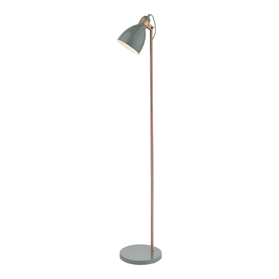 Fredrick is a neat space saving floor lamp in soft gloss grey with a cool Nordic look warmed up with the gorgeous copper metal work and grey braided cable. Teamed with the matching table lamp this pair add an instant style fix to any interior. Dimensions H141 x Ø25cm Base Measurements: H2.5 x Ø25cm Materials & Other Information Finish:Chrome Glass,Polished Chrome Lamp:1 x 60w max ES GLS