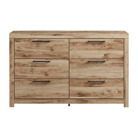Inspired by natural beauty, refined to perfection. This dresser brings cozy outdoor vibes to your bedroom with its warm and inviting golden rustic finish. Handles in an antiqued gunmetal hue adorn the six drawers on its framed front, adding an industrial touch to the simple, streamlined design.Made with engineered wood (MDF/particleboard/plywood) and decorative laminate for the right balance of affordability and durabilityGolden rustic finish over replicated oak grain with authentic touchExpertly made with engineered wood (MDF/particleboard/plywood) for the right balance of affordability and durabilityDecorative laminate replicates natural or man-made material surfaces with consistent color, pattern and textureHandles with antiqued gunmetal finish6 smooth-gliding drawersDrawer interiors are lined with a faux linen laminate for a clean, finished lookFramed front and pilastersSafety is a top priority, clothing storage units are designed to meet the most current standard for stability, ASTM F 2057 (ASTM International)Drawers extend out to accommodate maximum access to drawer interior while maintaining safetyAssembly required. Estimated Assembly Time: 5 Minutes Number of Drawers: 6Included: 1 Dresser(s)Features: StorageTools Required: Screws (included), Allen Wrench (included)Dresser Measurements: 15.31 Depth/Inches, 58.7 Width/Inches, 36.42 Height/InchesWeight (lb.): 119 LbAssembly: Assembly RequiredBase Material: 80% Medium-Density Fibreboard, 15% Particle Board, 5% Other 5% Or LessFinish: Gold, OakCare: Wipe CleanDecor Styles: RusticEstimated Assembly Time: 30 MinutesMaterial: Manufactured WoodCountry of Origin: Made in US
