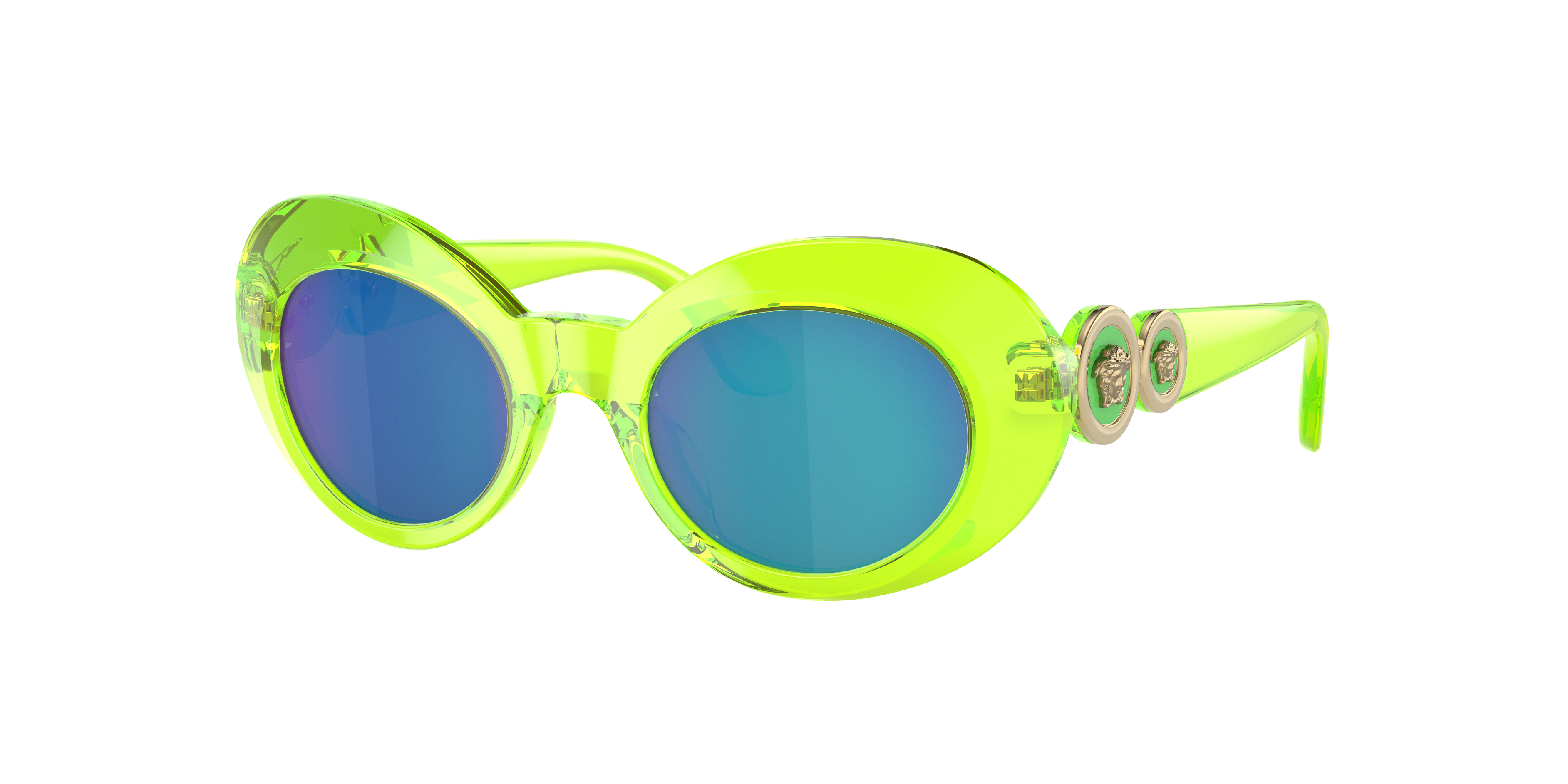 Protect your child's eyes in vibrant style with these Versace kids sunglasses featuring transparent fluo green frames and playful green mirror light blue lenses. Designed specifically for Australian conditions, these sunglasses provide 100% UV protection for developing eyes during beach trips, park adventures, and playground fun. The lightweight acetate frame withstands active play while maintaining comfort throughout the day. Versace's signature Medusa detailing adds luxury appeal, while the adjustable fit ensures they stay securely in place during running and outdoor activities. These durable sunglasses grow with your child, offering lasting protection and style they'll love wearing. Visit Sunglass Hut Australia for expert fitting services that guarantee optimal comfort and protection for your child's eyes during all your family outings. The bright fluo green color makes them easy to spot while the quality construction ensures they can handle whatever adventures come their way.